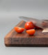 Luomus leikkuulankku on yksilöllinen, ylellinen ja elegantti työkalu keittiöön. Leikkuulaudan käsin veistetyt harkitut yksityiskohdat antavat silmäruokaa ja nostavat veden kielelle. Lankulle on ominaista puun elävä kylkiviiva, joka yhdistyy käsin pehmennettyihin viivasuoriin päätyleikkauksiin. Päädyt ovat leikattu hieman kulmaan, jolloin valo saa leikkiä mielin määrin pinnalla. Päädyn käsin koverrettu aaltomainen pinta tuntuu suorastaan hekumalliselta sormen pään alla.